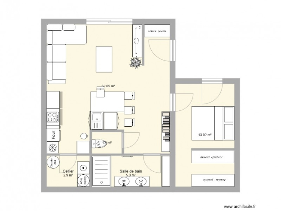 Appartement 2 pièce(s) 1 chambre(s) 58 m²